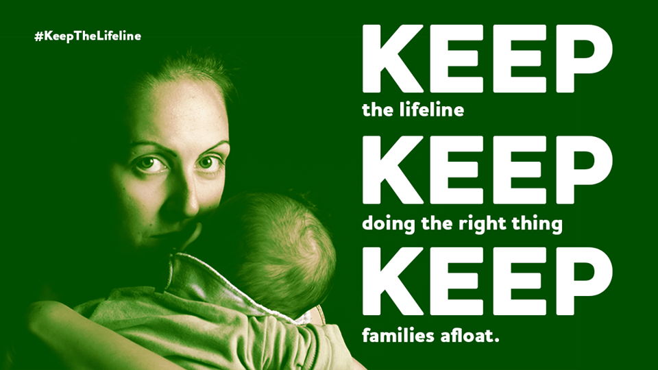 Mother with baby for keep the Lifeline campaign -